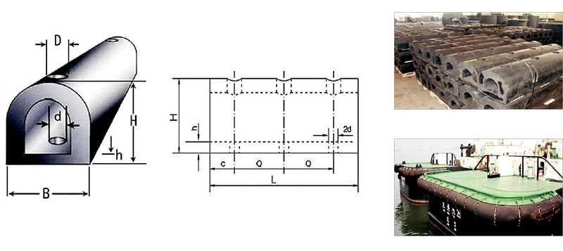 1.反力、吸能量適中 2.底部寬度小,特別適用于框式碼頭 3.重量輕,安裝維護(hù)方便| 型號(hào) | H | B | L | 孔數(shù) | Q | C | h | D | D |