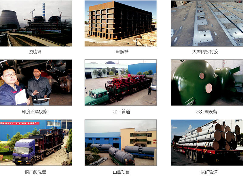 我公司化工防腐襯里系列主要有橡膠襯里(包括襯天然橡膠、氯丁橡膠、丁腈橡膠、低鈣鎂橡膠、預(yù)硫化丁基橡膠、熱水硫化橡膠、水泥基體襯膠),PE(PO)襯里,耐酸瓷磚襯里,玻璃鱗片樹(shù)脂襯里等。